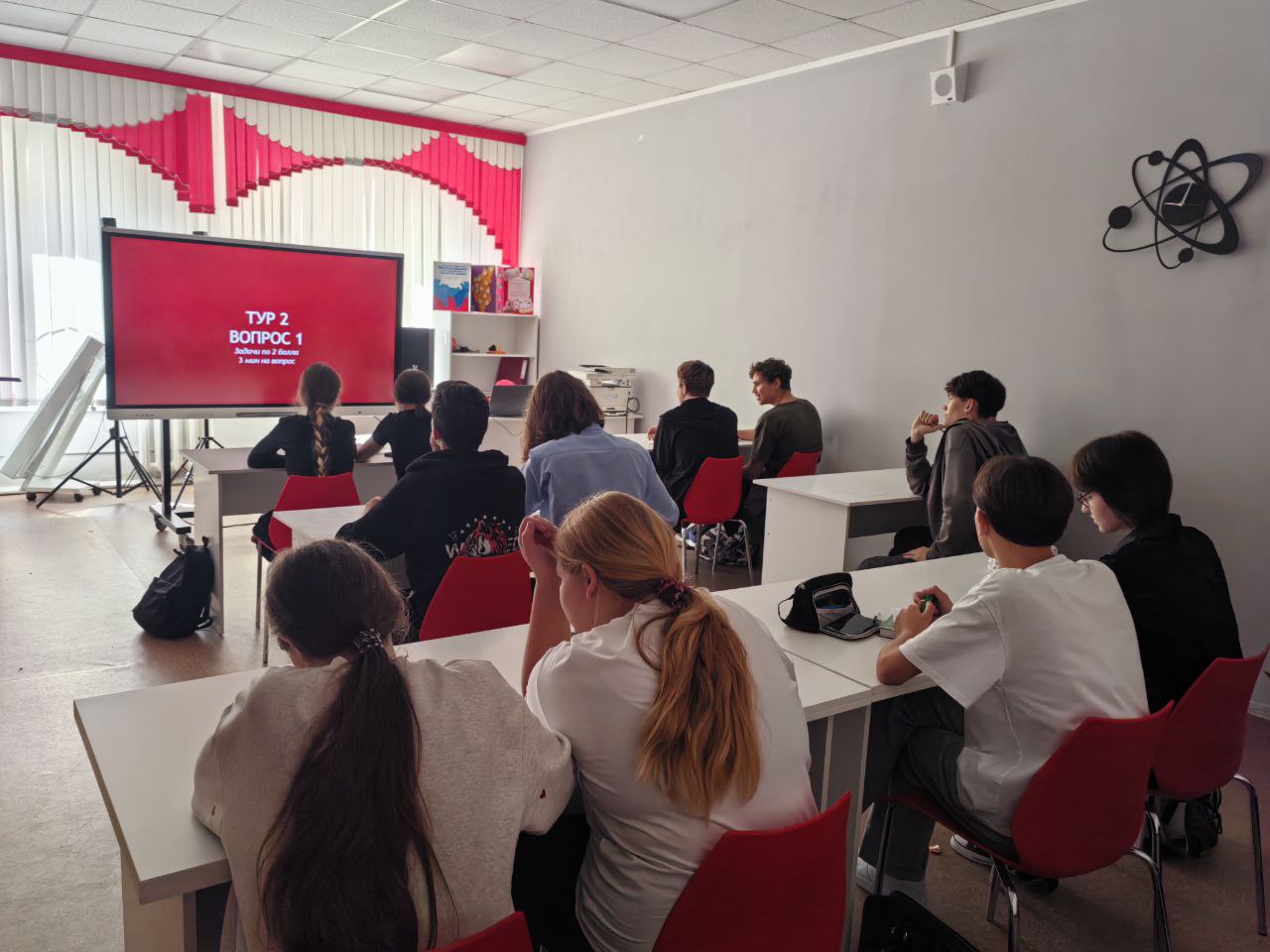 17.09.2025 г. В рамках проекта «Физика для всех», Всероссийское научно-популярное мероприятие «День Физики – 2025» между учащимися 9 класса прошло интеллектуальное соревнование «Наша игра», созданное по образцу популярной телевизионной викторины «Своя игра». Ребята с удовольствием отвечали на вопросы связанные с разделами физики, проявили активную командную работу.