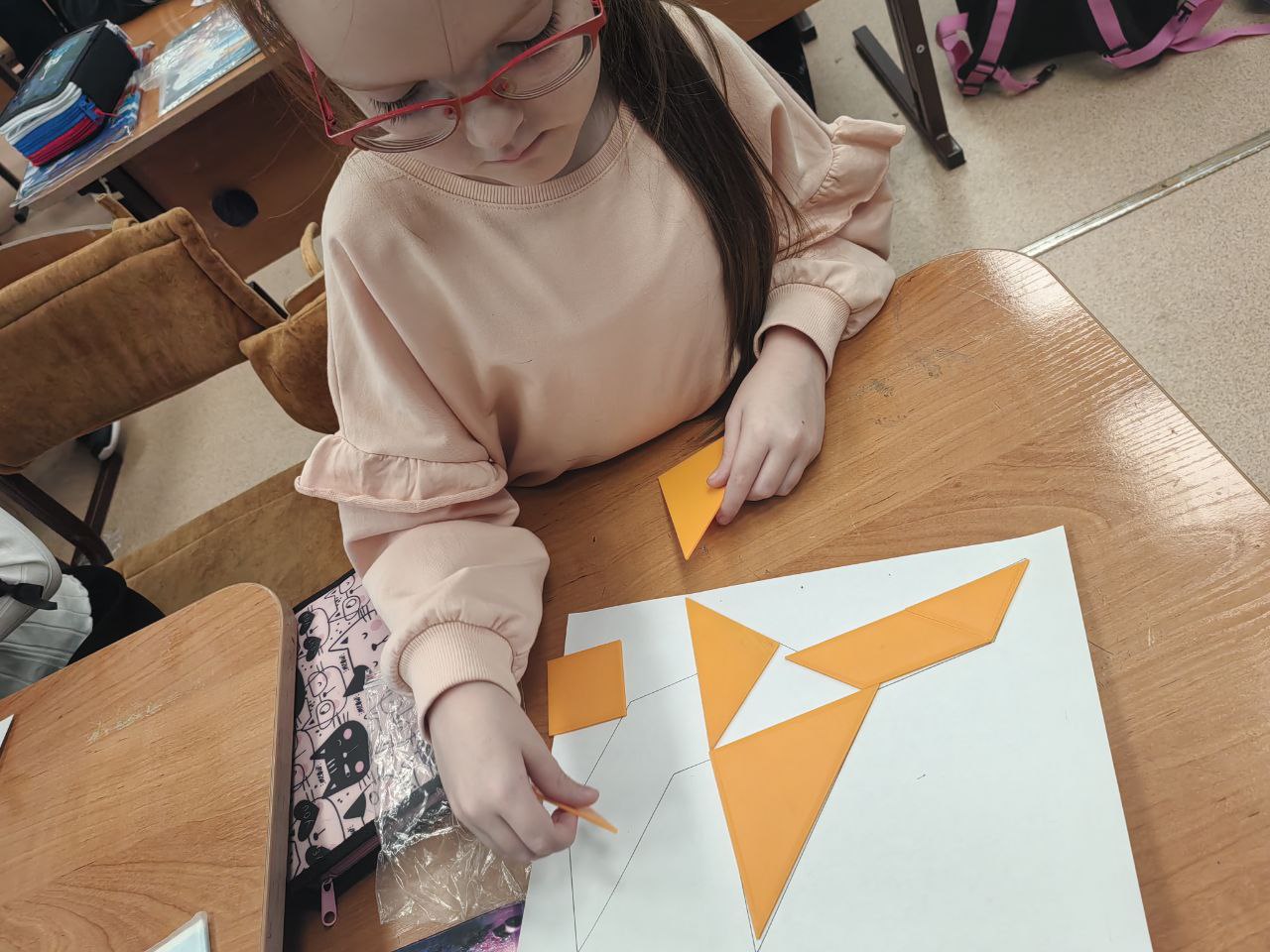 23.10.25 г. Занятие по наглядной геометрии. Не хватило одного набора ТАНГРАМИ. Малыши не растерялись и напечатали его!