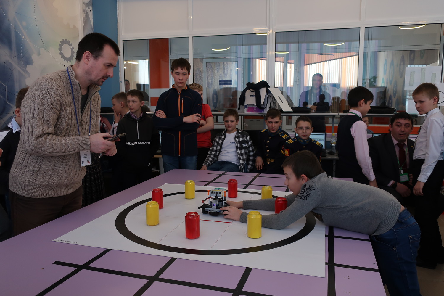 Соревнования мобильных роботов проходили по четырем направлениям: «Кегельринг», «Траектория», «Лабиринт», «Биатлон».